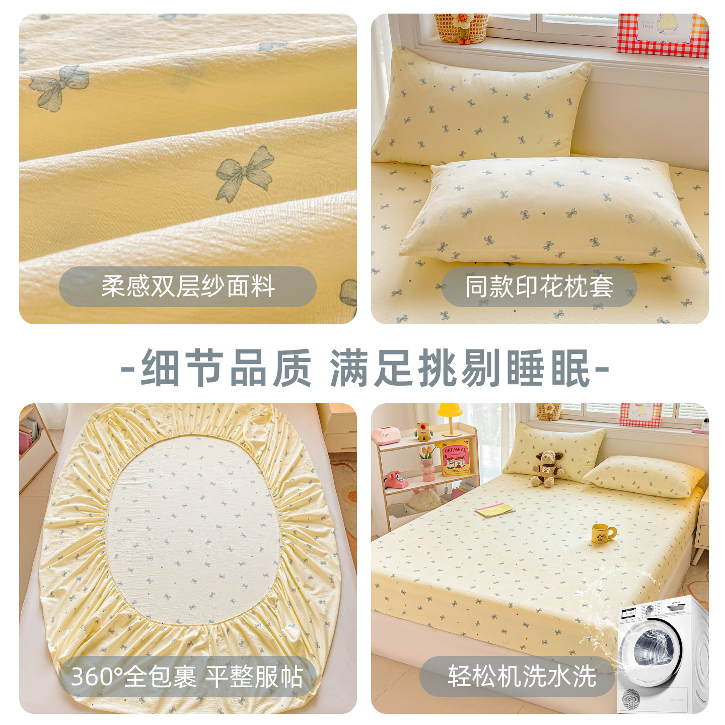 双层纱水洗棉床笠罩单件非全棉纯棉宿舍床单防滑席梦思床垫保护套