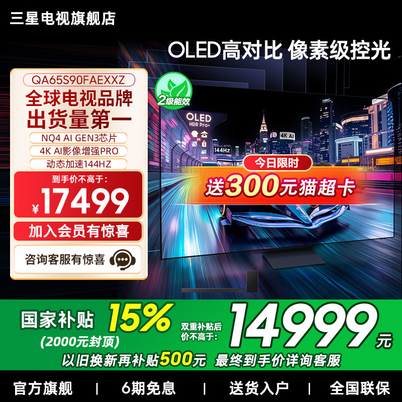 【补贴15%】Samsung/三星 65S90F 65英寸OLED高刷144Hz游戏电视