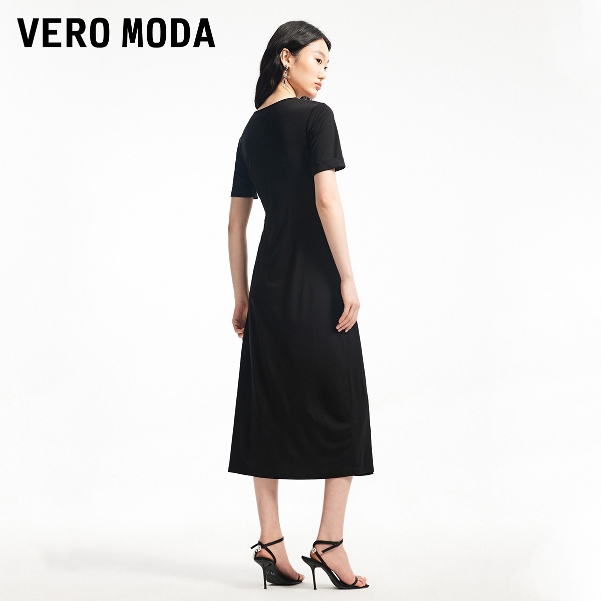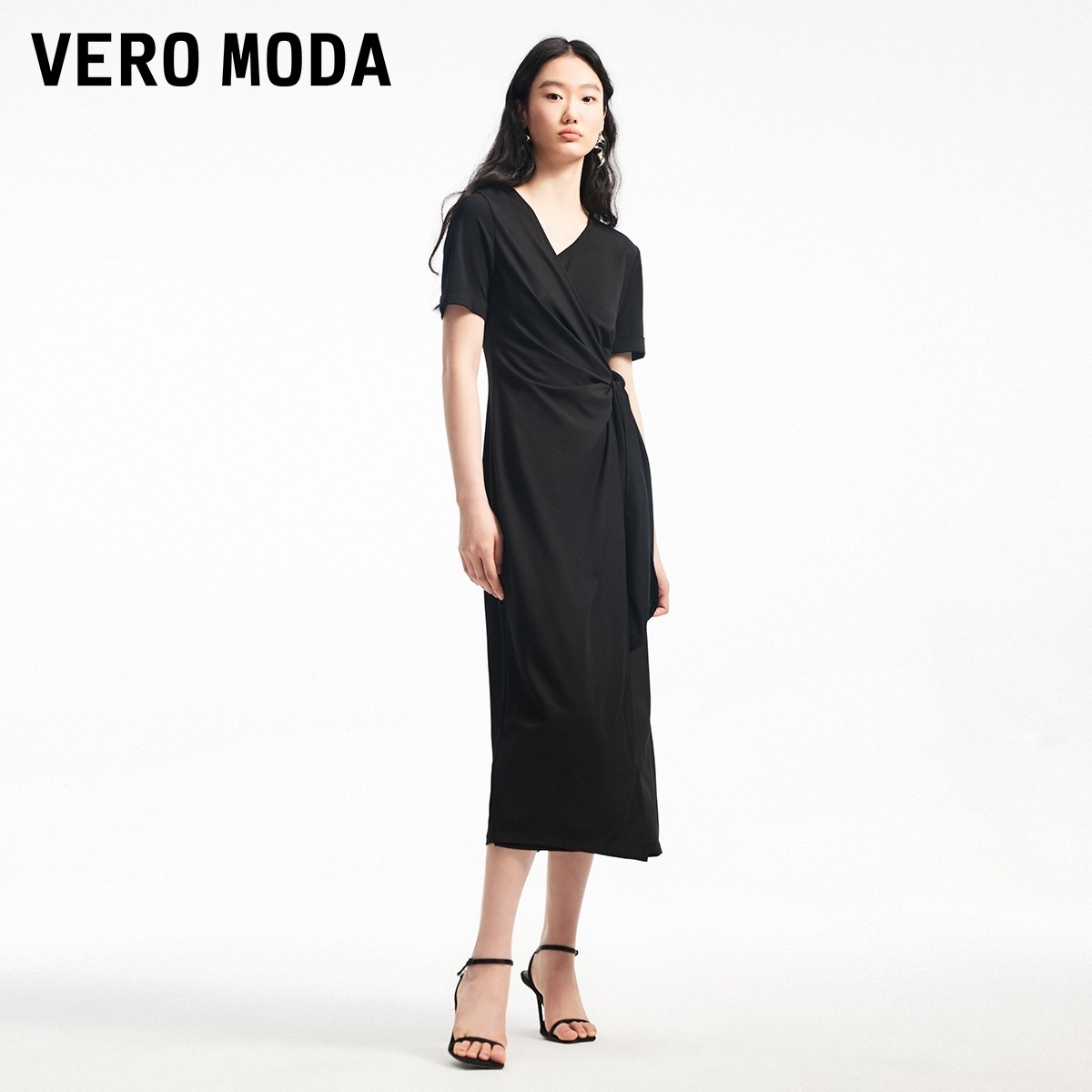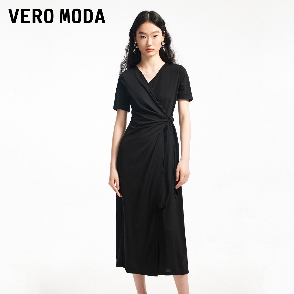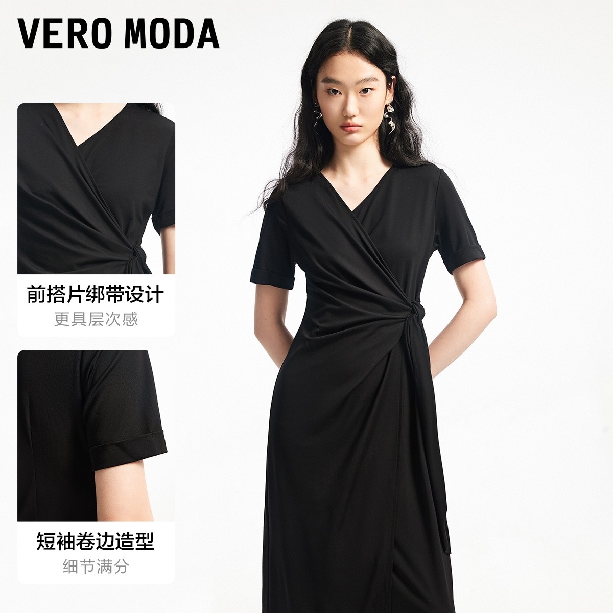 Vero Moda奥莱连衣裙秋季新款简约优雅搭片式绑带短袖裙通勤流行