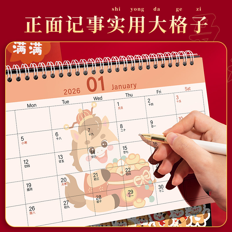 季左2026年韩式台历日历马年新款定制订制小卡月历桌面摆件网红卡通高颜值办公台历卡通可爱
