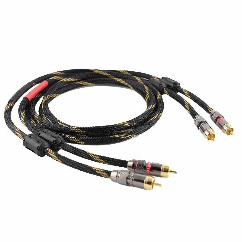 美国声弦纯铜发烧信号线双莲花头音频线RCA二对二车载红白链接线