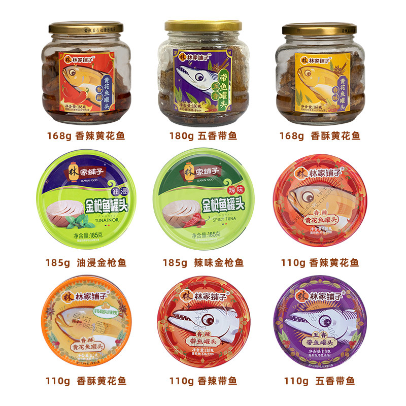 林家铺子黄花鱼罐头带鱼金枪鱼即食五香香酥香辣下酒零食小菜年货