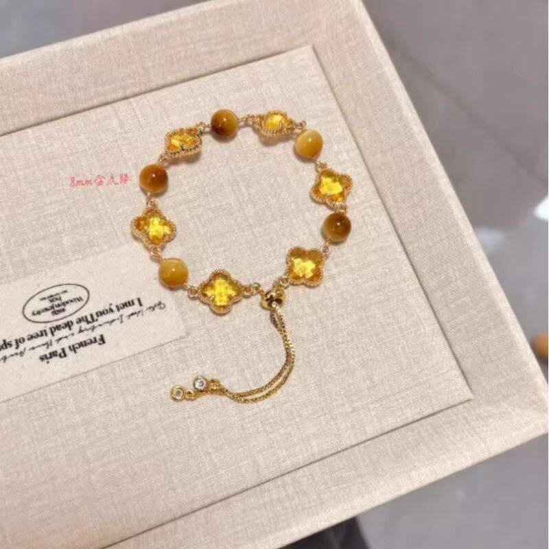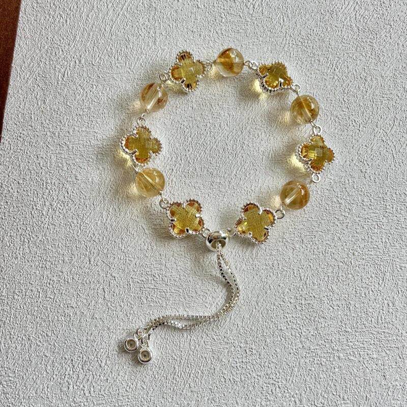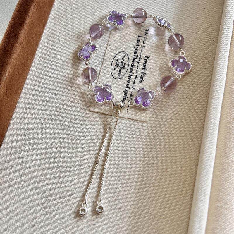 原创天然紫水晶黄水晶四叶草五花手链梦幻系列手饰