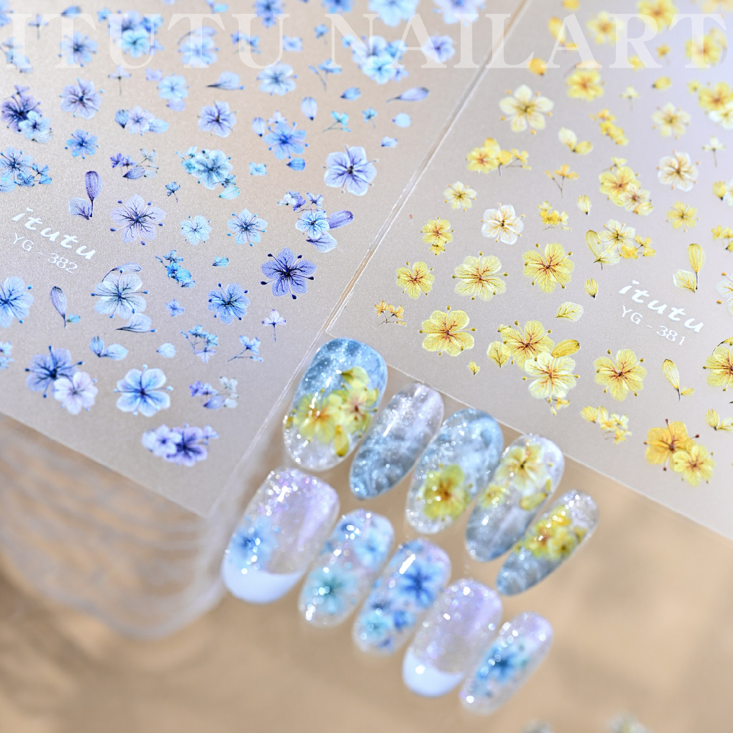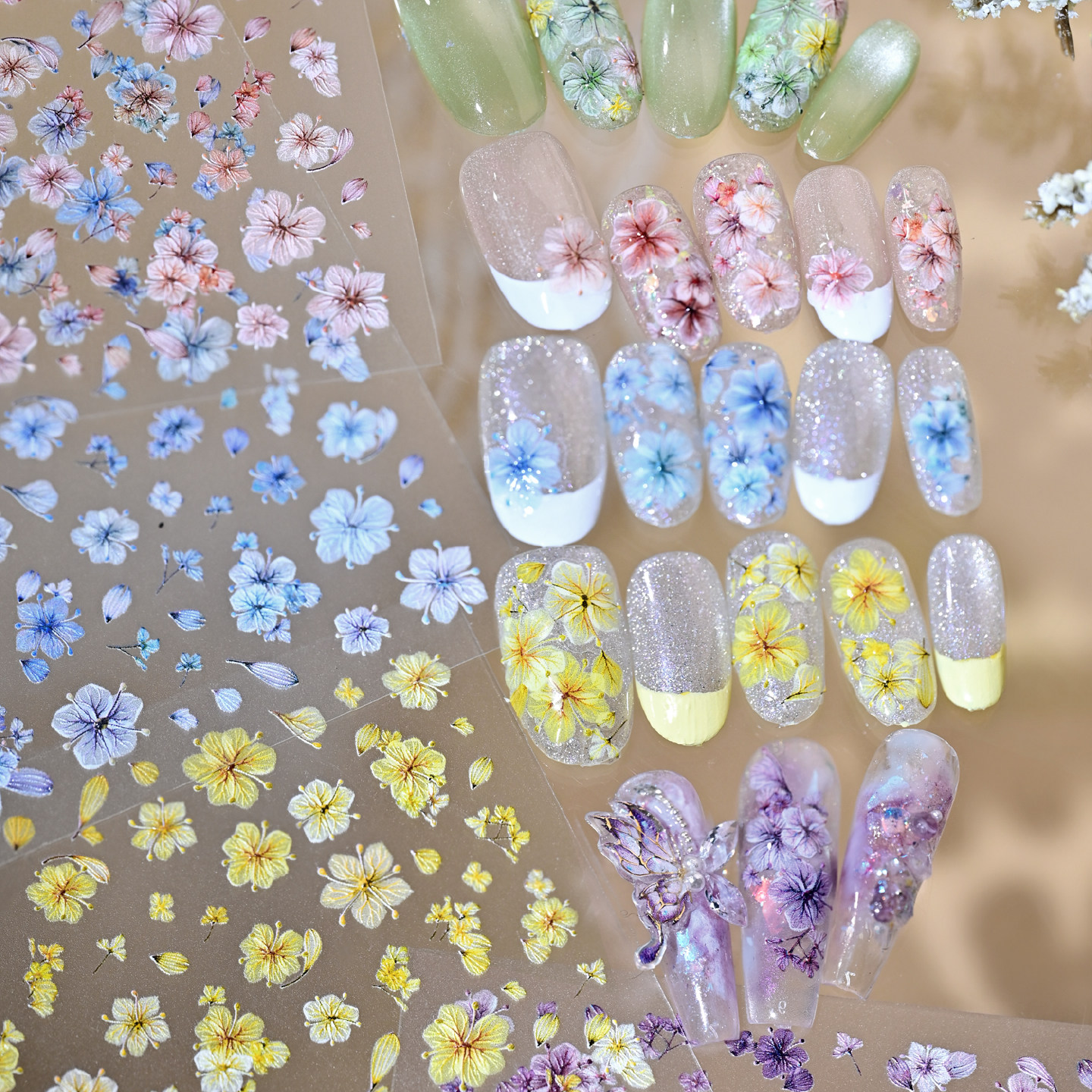 春夏仿真彩色干花浮雕美甲贴纸清新小碎花持久显白穿戴甲diy装饰