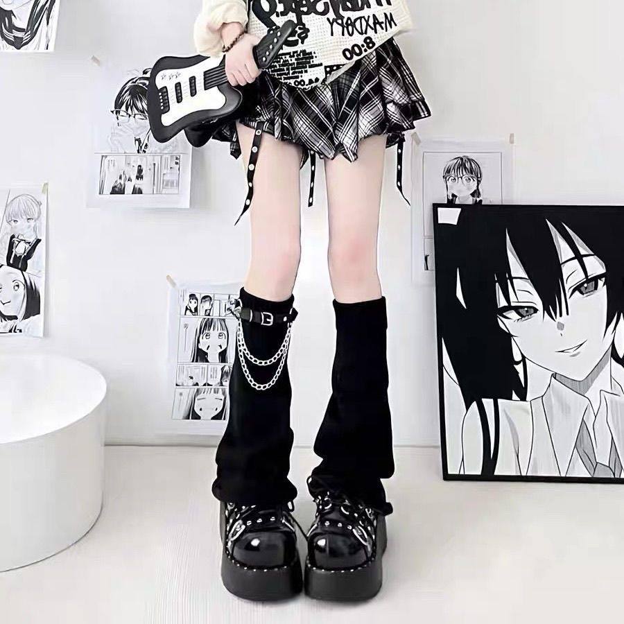 jk皮扣中筒堆堆袜套女黑亚比腿套辣妹y2k亚文化喇叭针织白色黑色