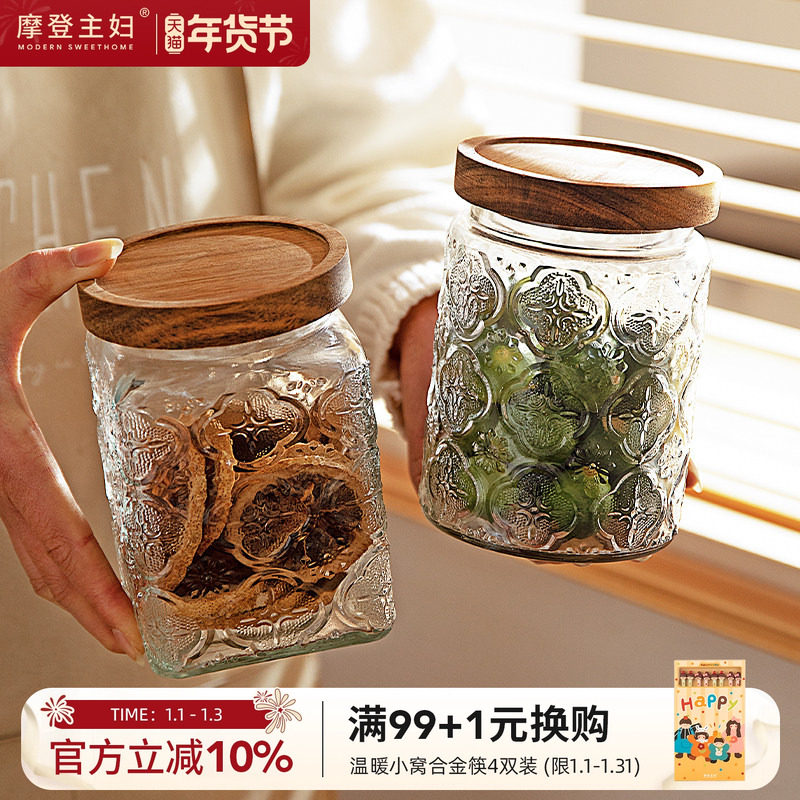 摩登主妇玻璃密封罐食品级零食坚果储物罐子白糖储存罐茶叶收纳罐