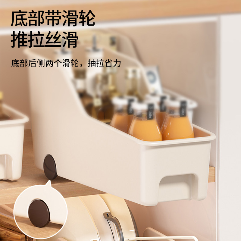 厨房锅具收纳盒整理盒锅盖调料带滑轮下水槽橱柜收纳多功能收纳架