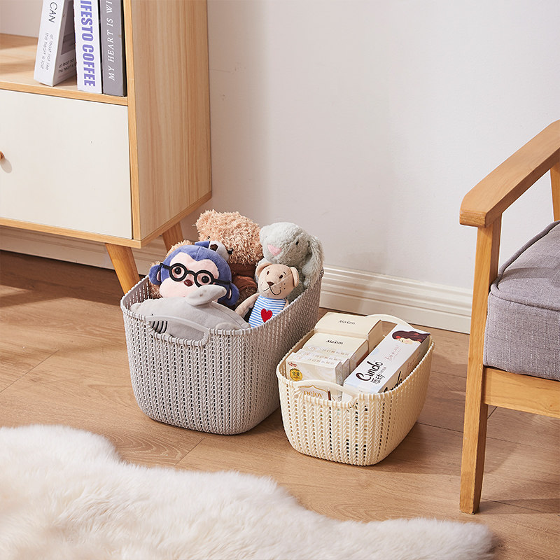 复古高级仿藤编收纳筐零食玩具脏衣篓大杂物储物框野餐篮子可水洗