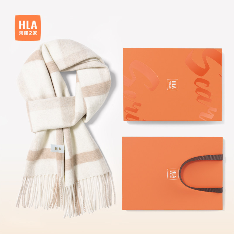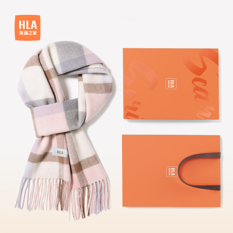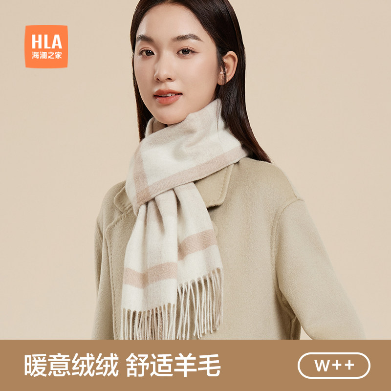 海澜之家绵羊毛流苏围巾女士新款秋冬保暖户外骑行防寒围脖格子潮