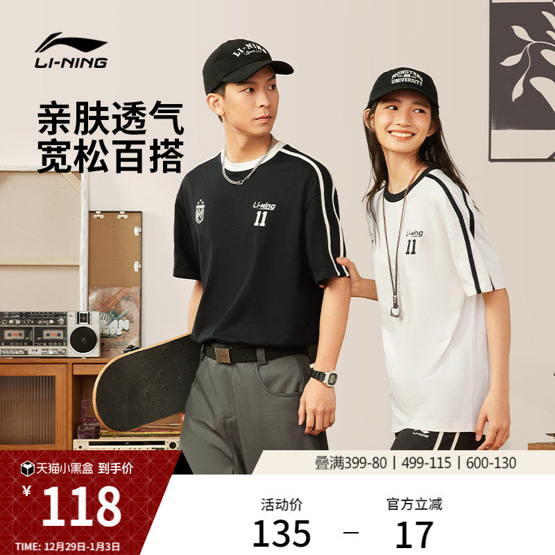李宁短袖女夏季情侣圆领冰丝体恤美式宽松白色上衣男棉感运动T恤