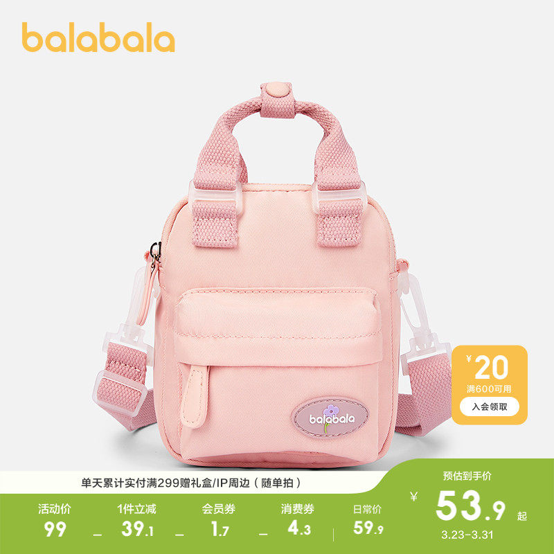 巴拉巴拉女童手拎包休闲包儿童布艺背包斜跨舒适撞色时尚甜美清新