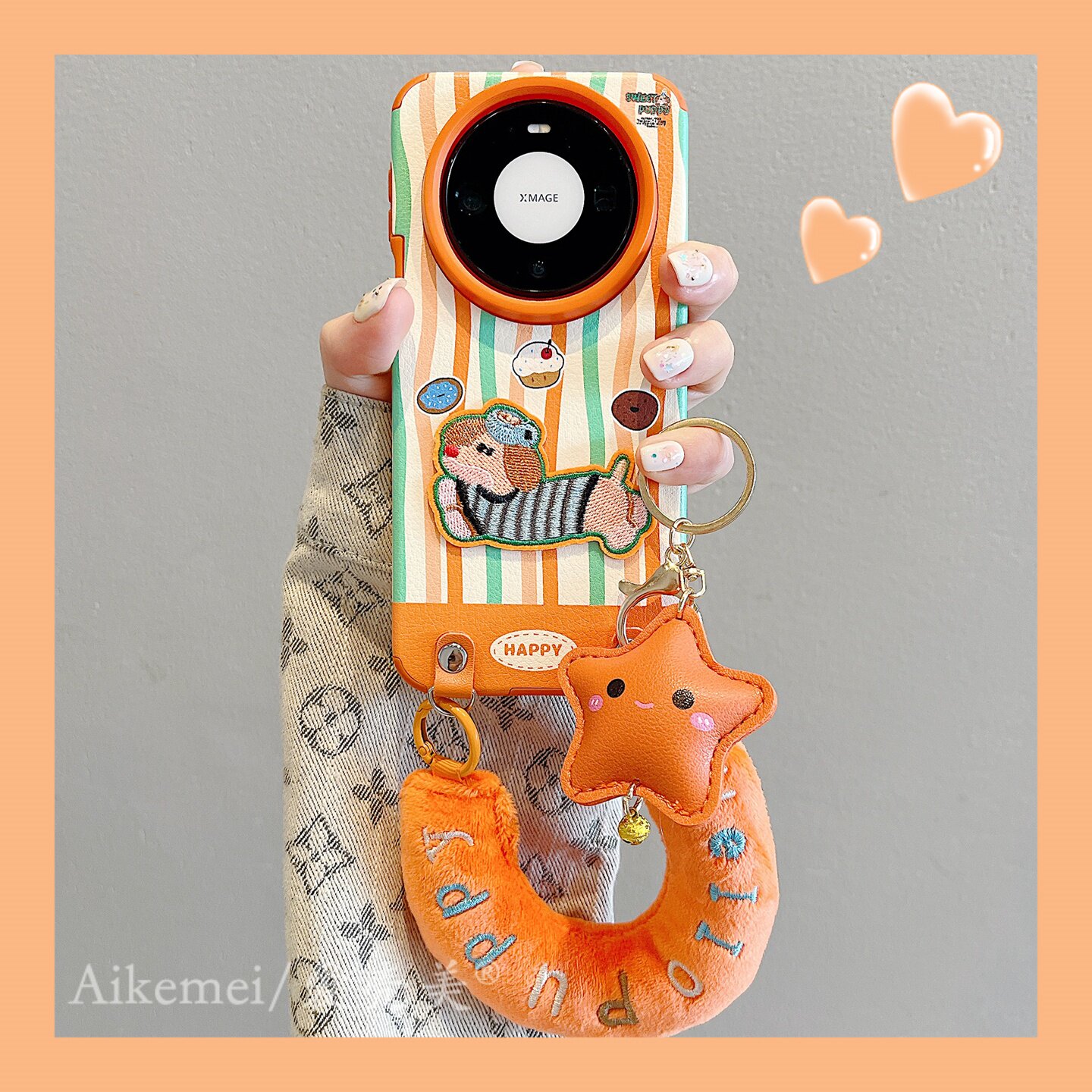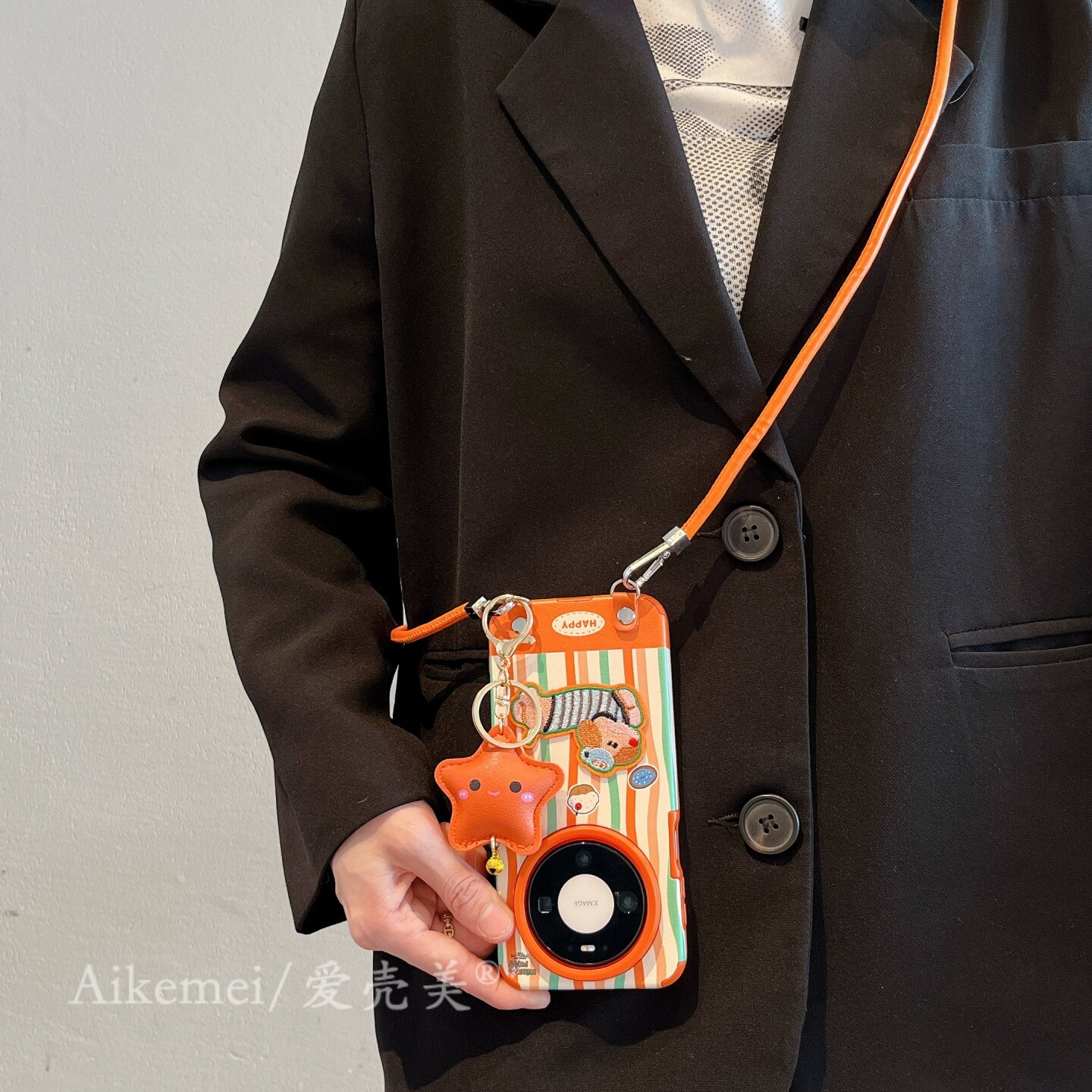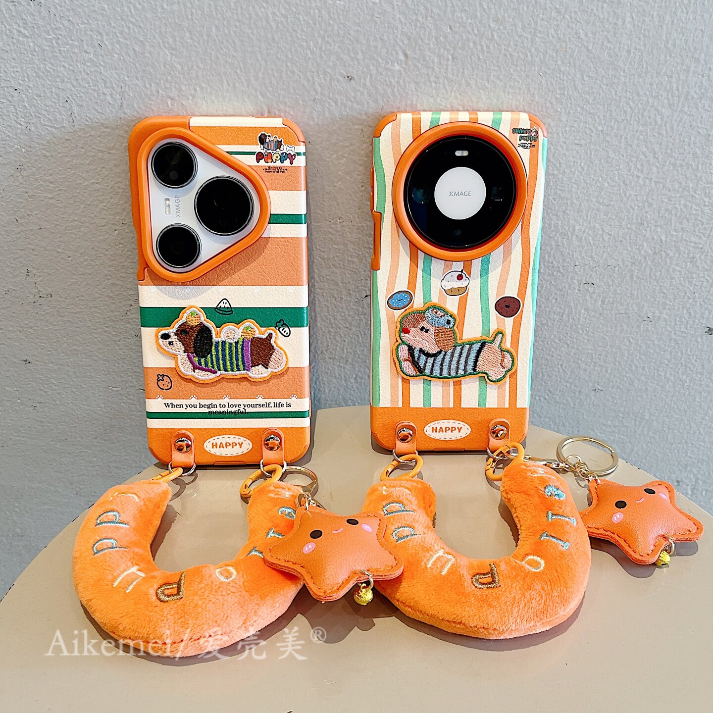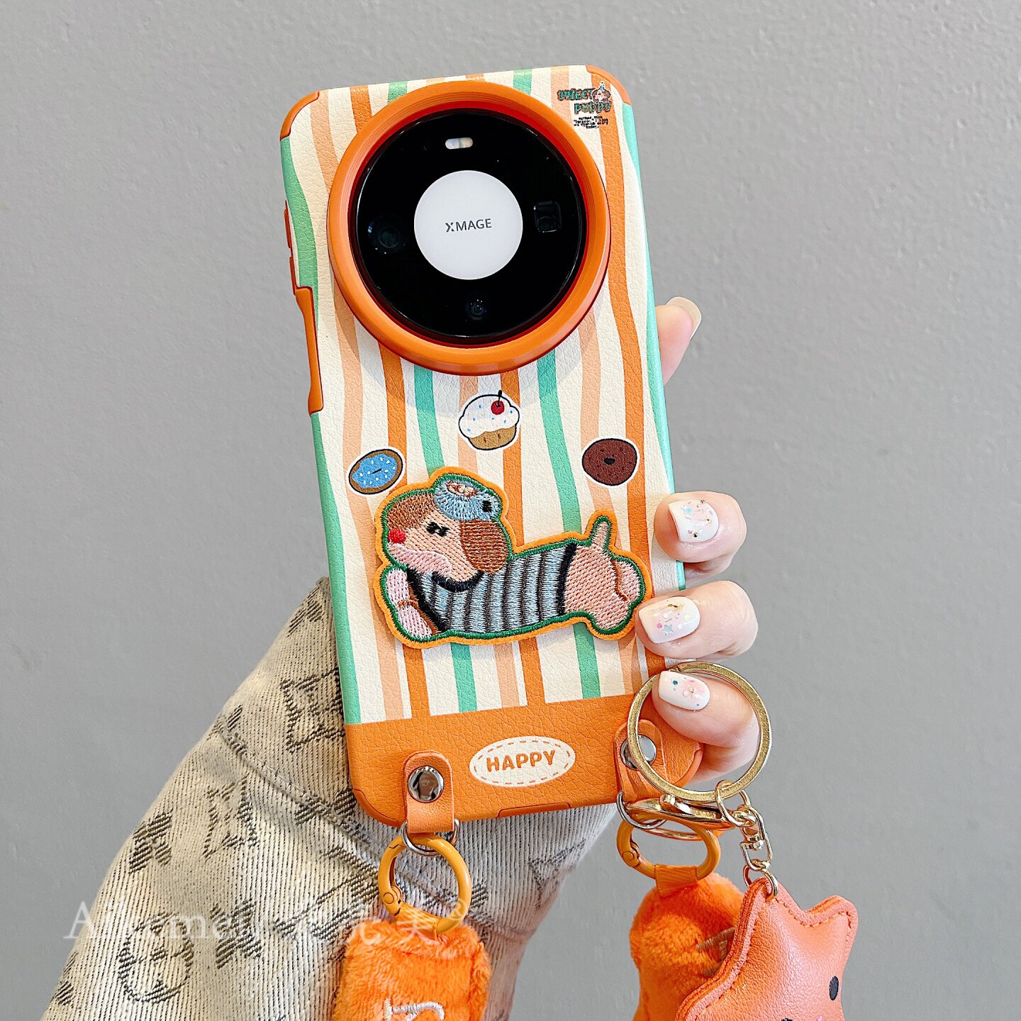 适用华为mate80promax手机壳韩系条纹刺绣小狗mate70pro星星斜跨挂绳小狗Mate60pro皮质pura80pro+防摔男女款