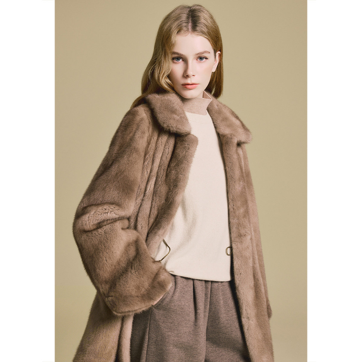 PSALTER诗篇保暖奢华直排工艺真皮水貂皮草外套2025冬季新款