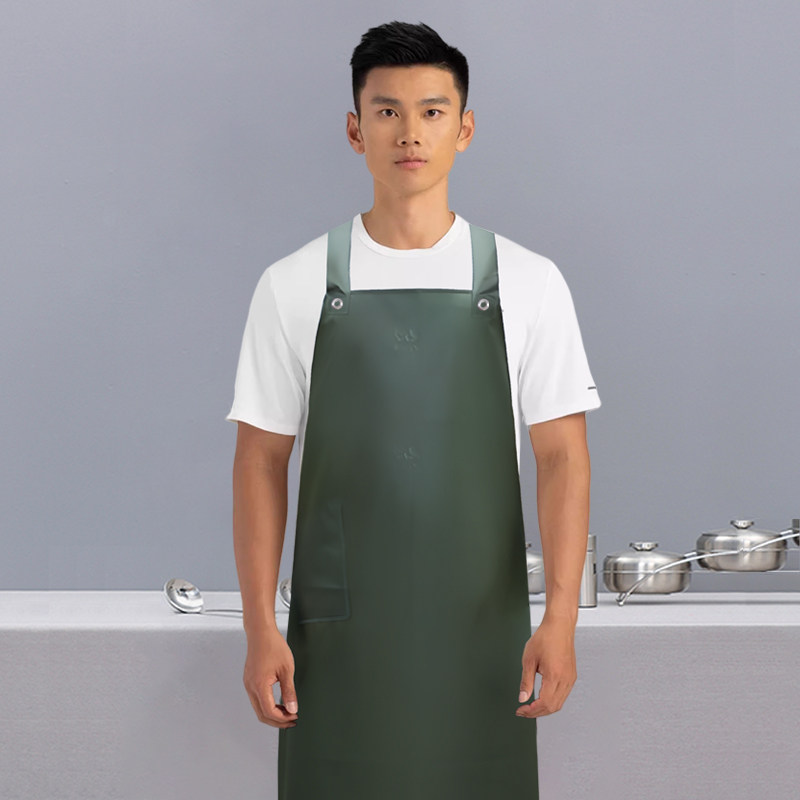 劳保新款防水软皮围裙男款防油厨房餐饮水产专用加长工作服耐磨