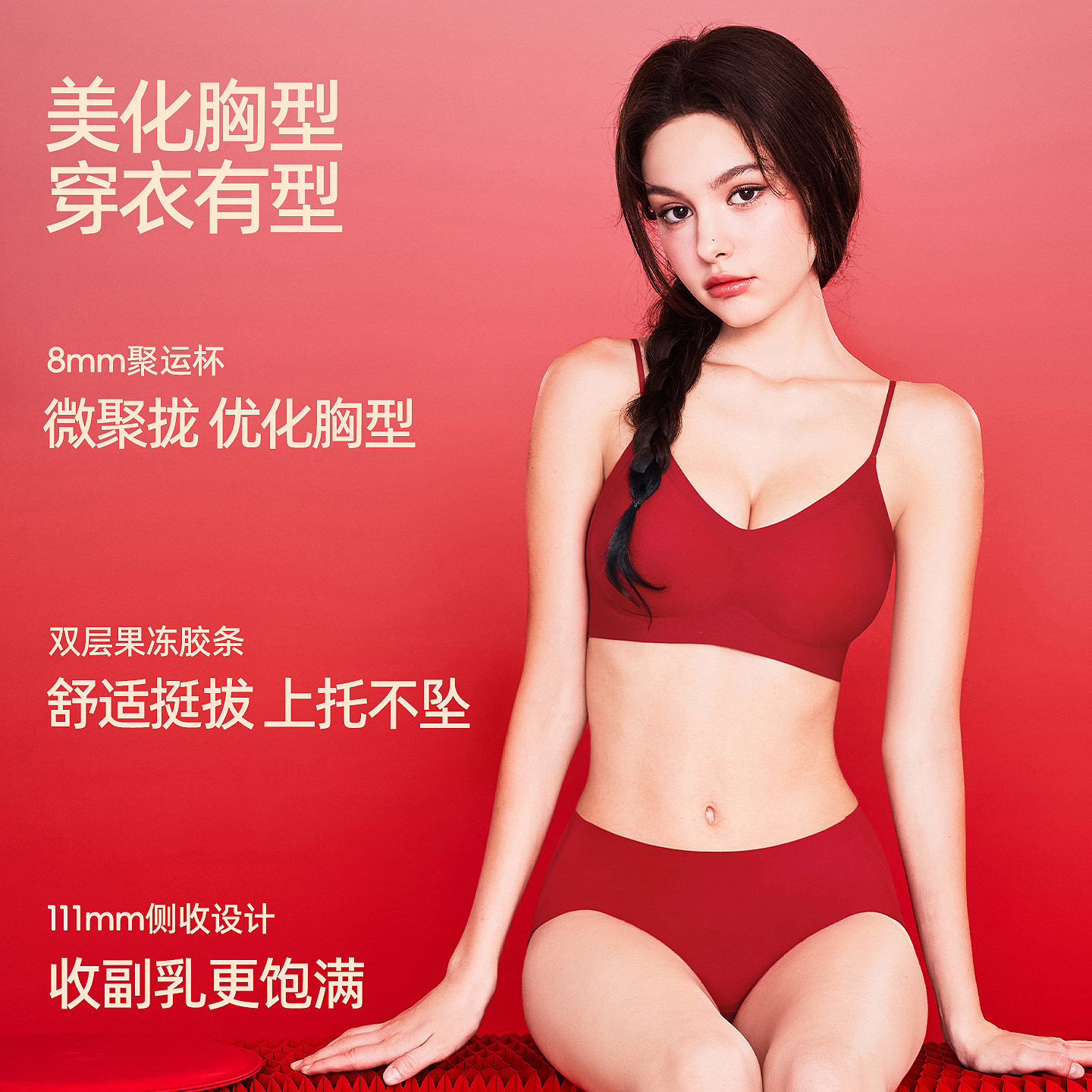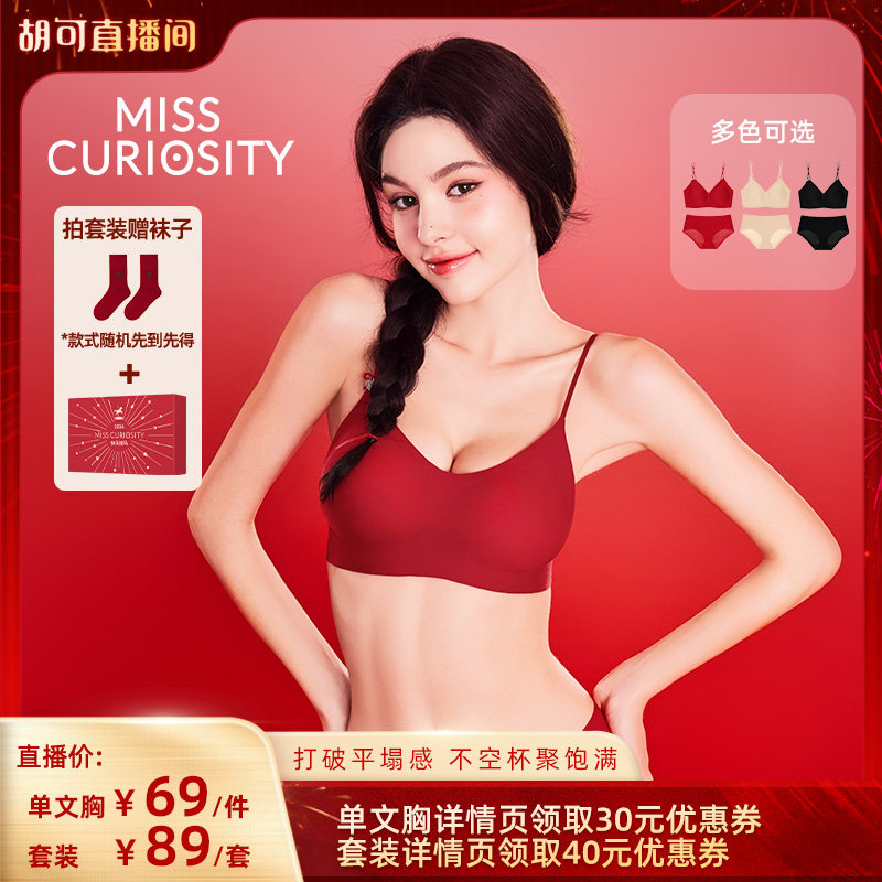 【胡可推荐】好奇蜜斯红色内衣女无痕无钢圈结婚本命年文胸罩套装