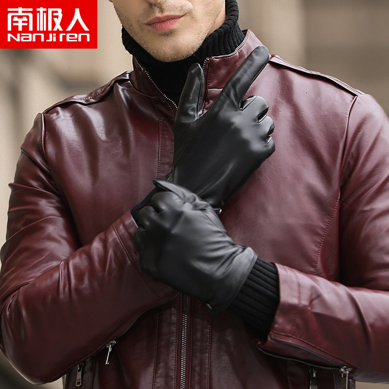 南极人真皮手套男士冬季羊皮保暖加绒骑行防寒风防水触屏摩托车J
