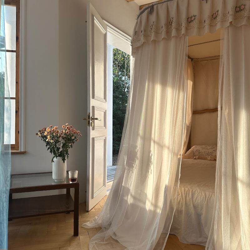 2025新款U型轨道双层家用公主风遮光帘床幔蚊帐防尘顶1.8m床挡风