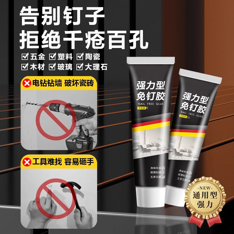免钉胶强力胶高粘度免打孔贴墙置物架踢脚线瓷砖专用结构玻璃胶水油性原胶防水木材