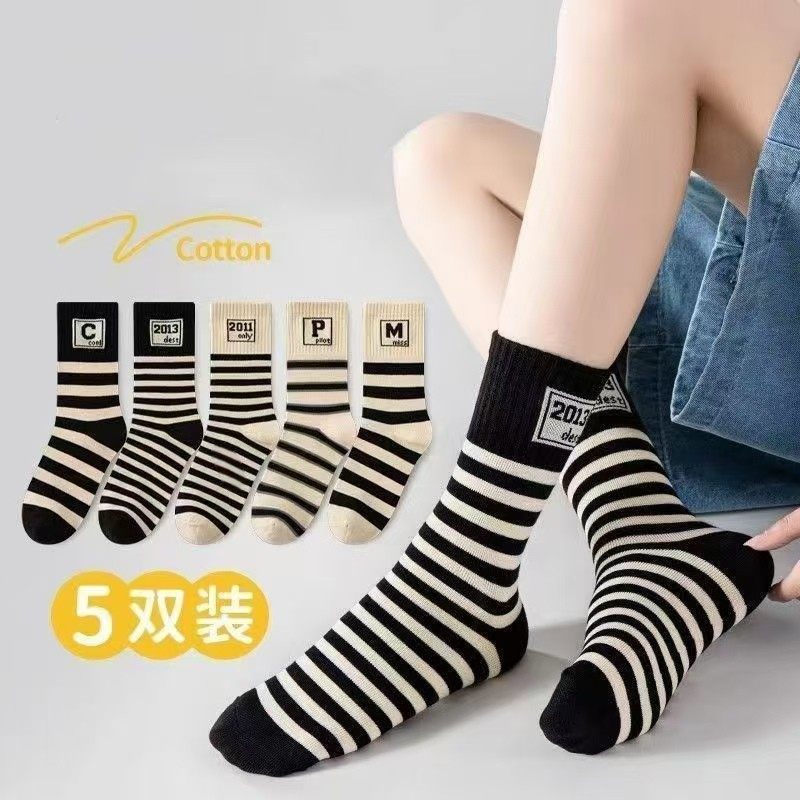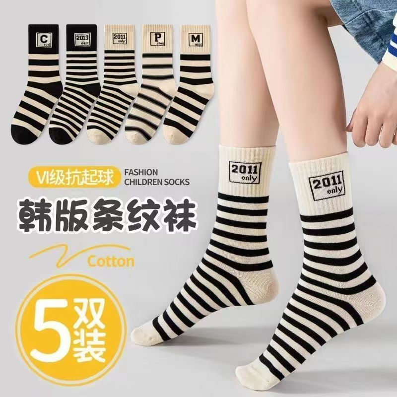 儿童袜子秋冬条纹中筒袜男童女童婴儿吸汗透气棉袜学生运动长筒袜