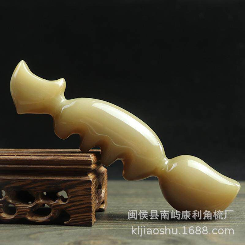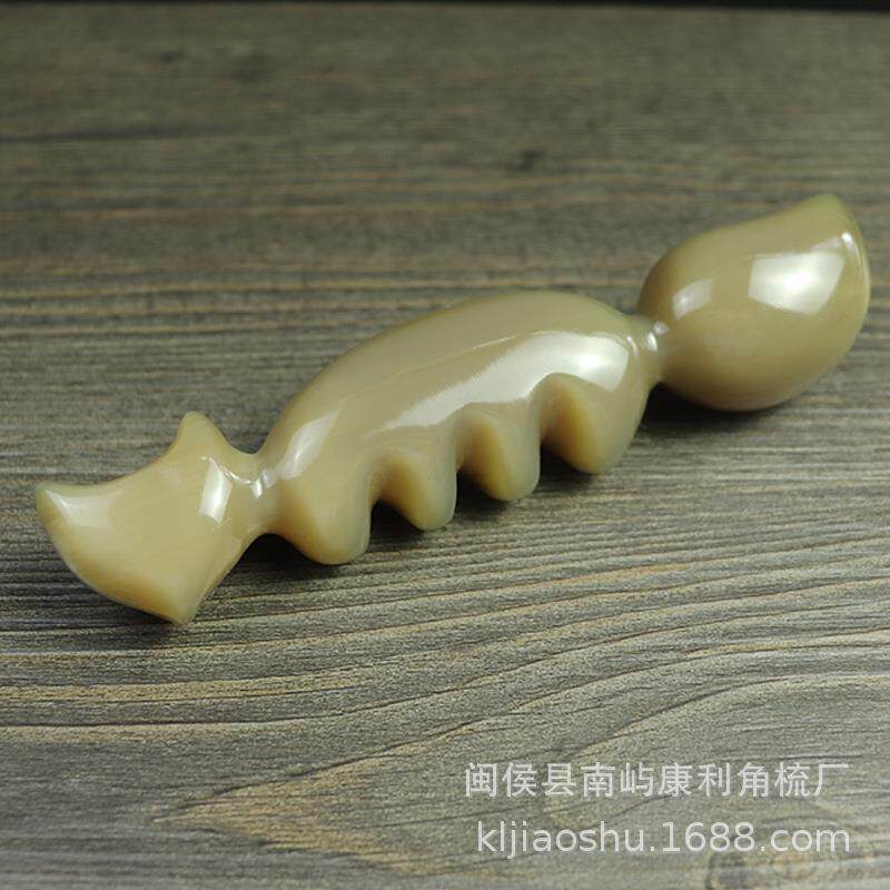 白牛角厚头部经络按摩梳子狐狸四五齿宽齿梳面脸部眼部拨筋棒角尖