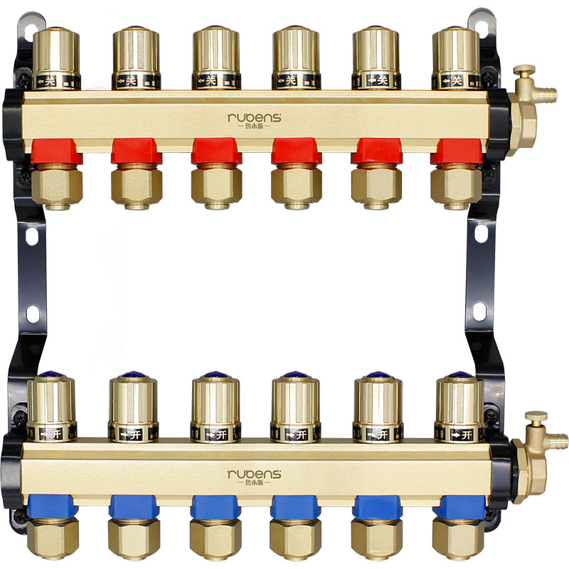 鲁本斯地热暖管分水器家用全铜一体大流量暖气片水暖温控球阀门