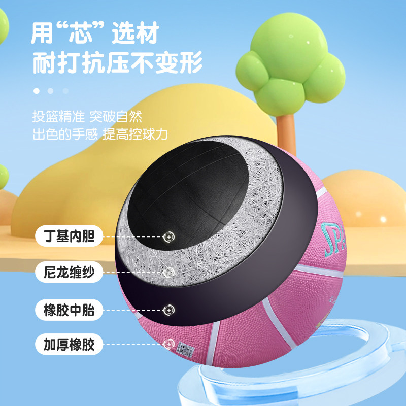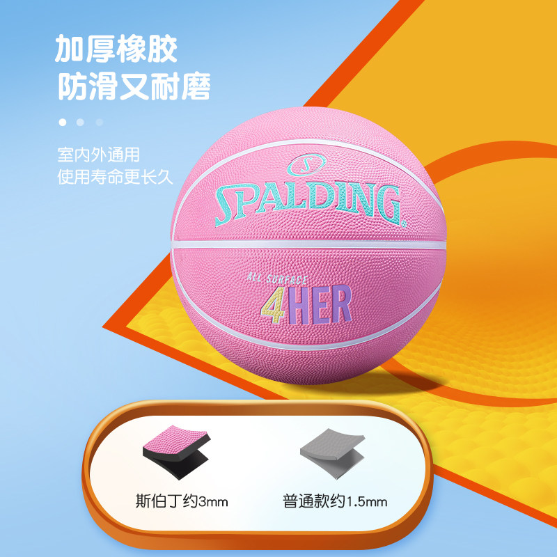 Spalding斯伯丁粉蓝橡胶女子6号篮球学生青少年生日礼物84-981Y6