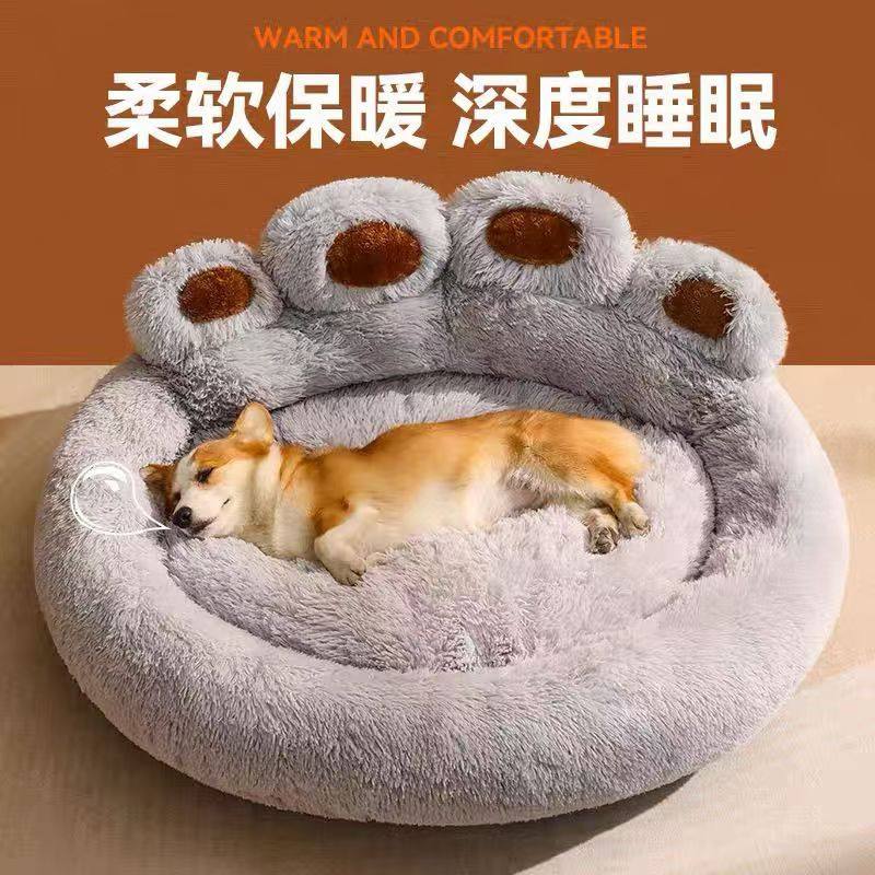 熊掌狗窝长绒冬季保暖软垫猫咪安全睡觉宠物猫窝冬天专用四季通用