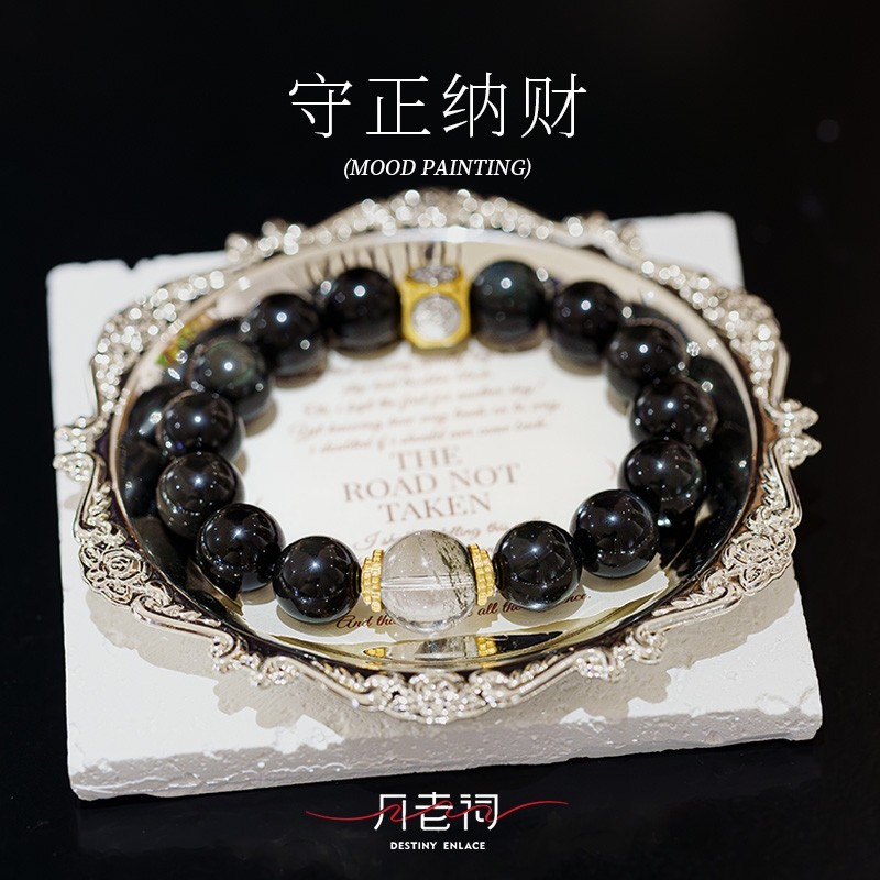月老祠堂绿幽灵黑曜石手串手链本命年珠冰种黑曜石父亲节礼物
