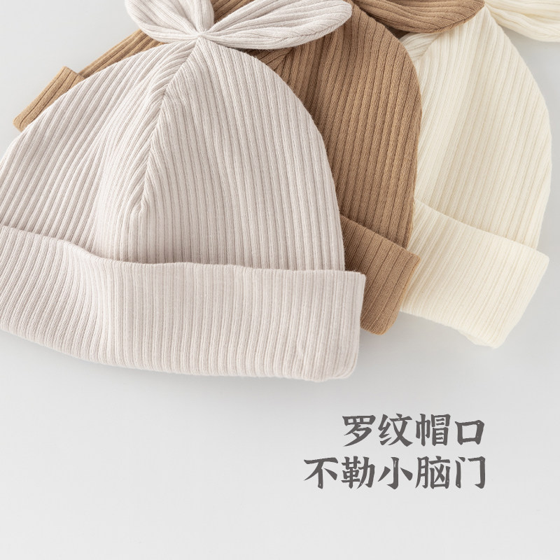 木生棉新生婴儿保暖胎帽宝宝休闲护囟门帽春秋季防风护耳居家小帽