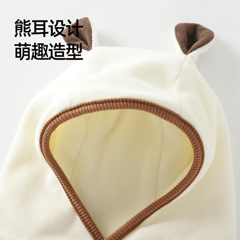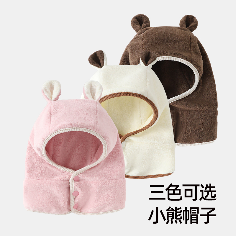 尼多熊婴儿帽子秋围脖一体宝宝毛绒帽防风护耳帽冬季保暖婴幼儿帽