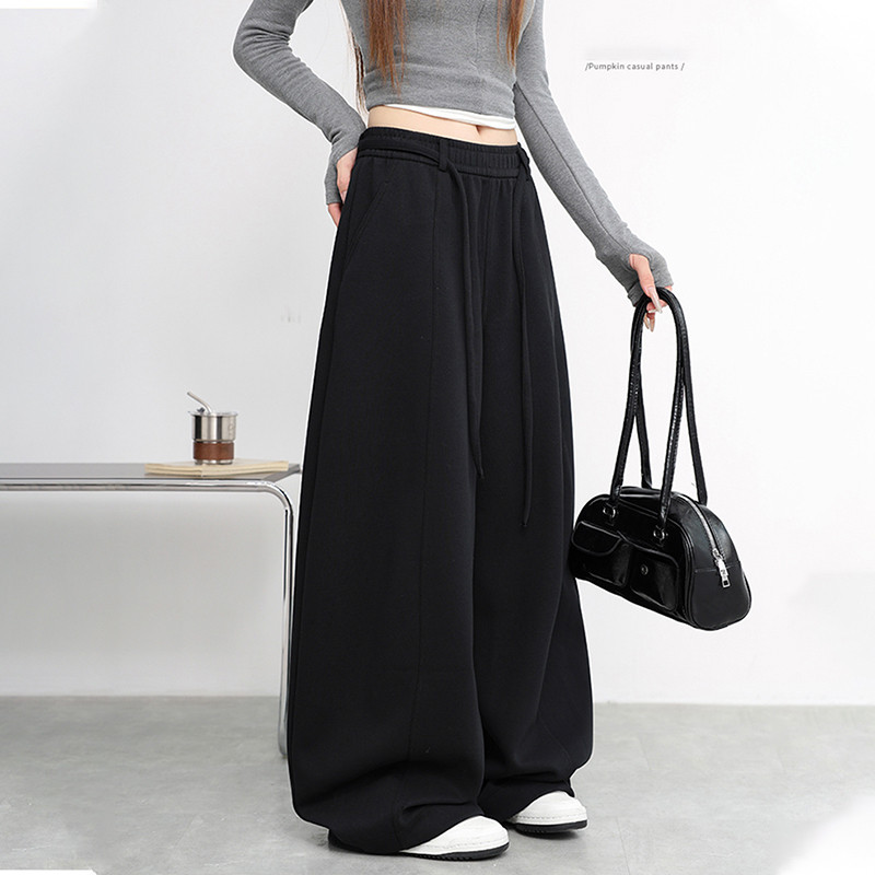 唐狮DESSO秋冬新款糯米裤高腰垂感宽松加绒直筒阔腿裤