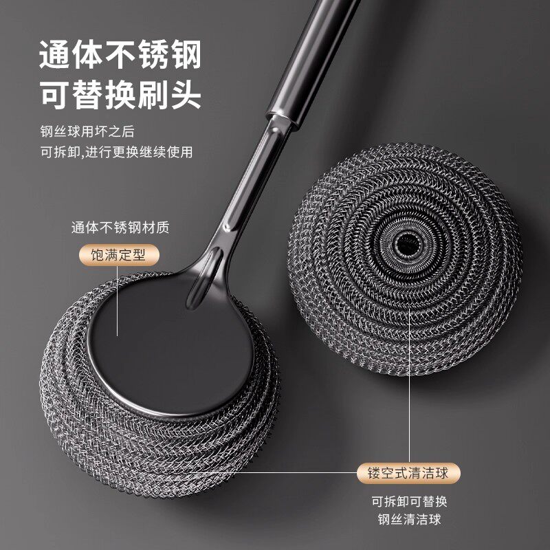 厨房不锈钢锅刷刷锅神器专用洗锅钢丝球刷长柄洗碗清洁刷子可替换