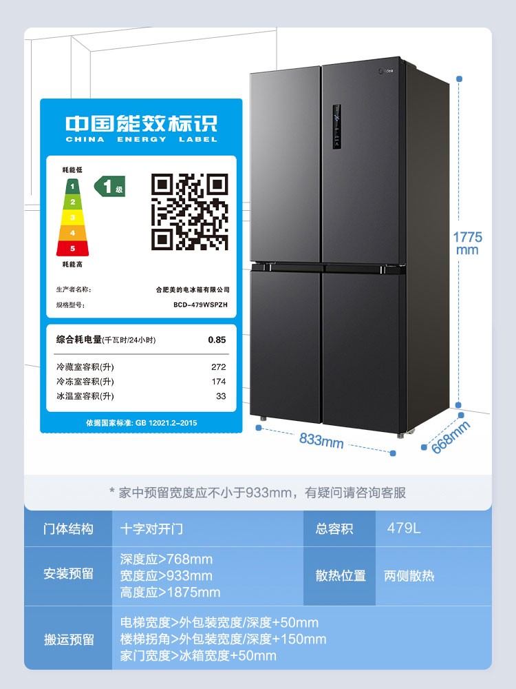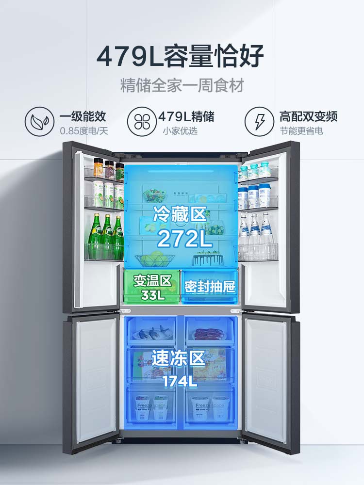 政府换新补贴海尔统帅469L十字对开四门一级风冷大容量家用电冰箱