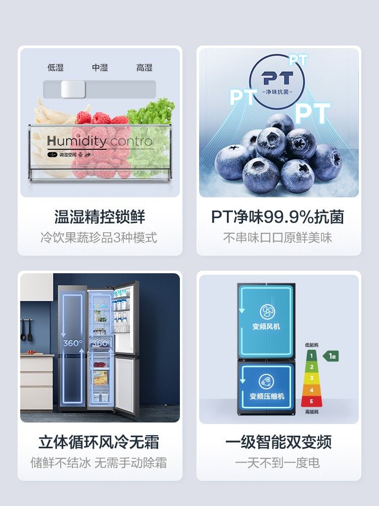 美的十字对开四门冰箱家用风冷无霜双门变频60cm超薄嵌入一级节能