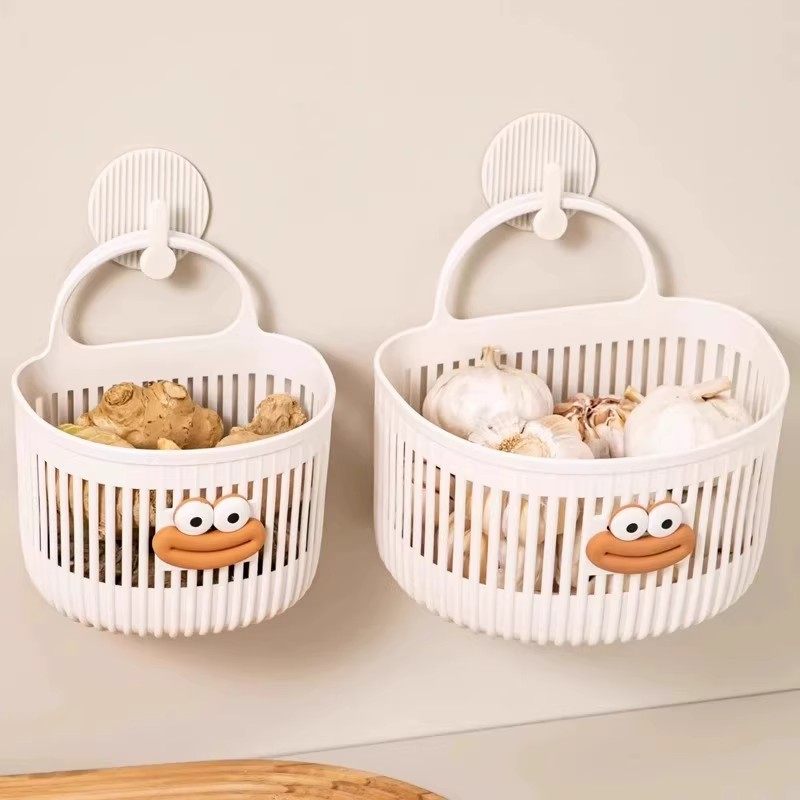 吸盘葱姜蒜收纳盒厨房置物架壁挂生姜大蒜收纳神器免打孔收纳挂篮