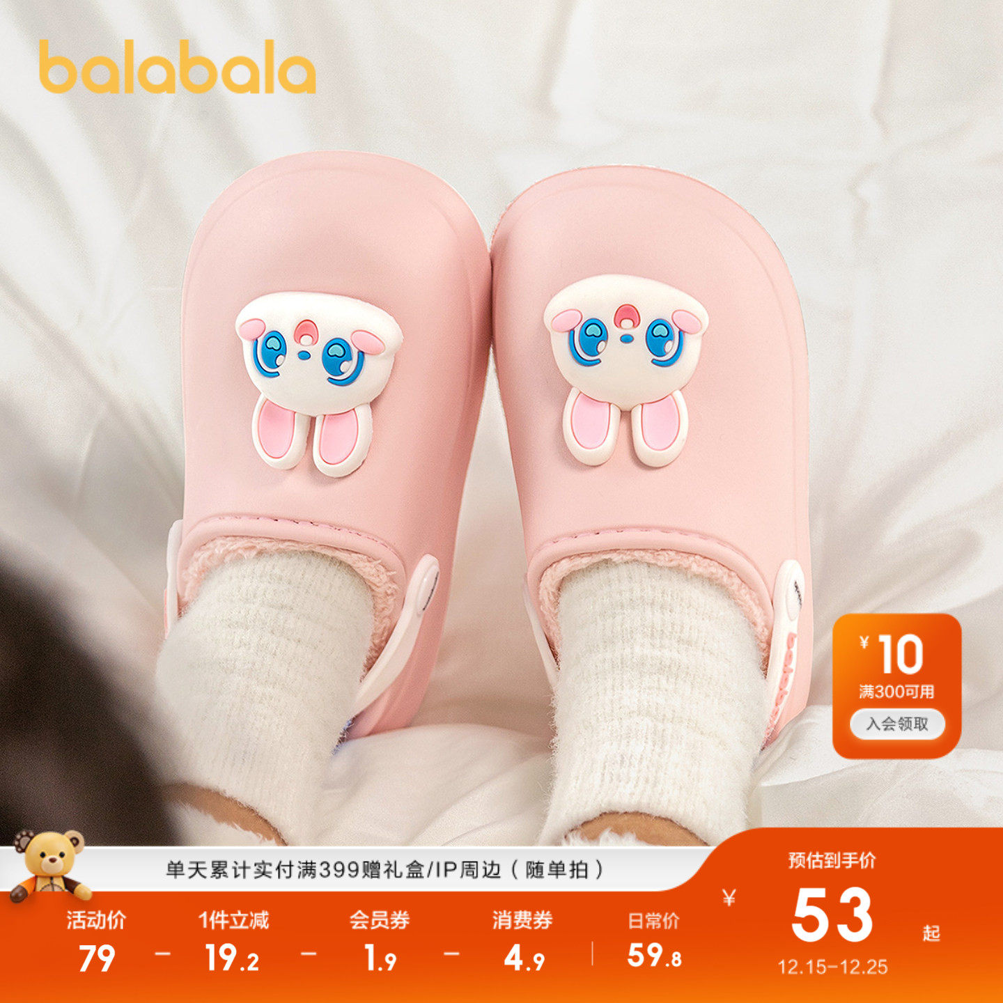 巴拉巴拉儿童棉拖鞋秋冬加绒保暖室内家居鞋男童女童卡通动物造型