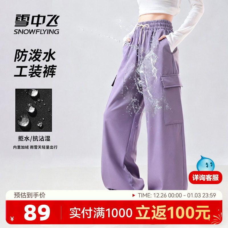 雪中飞加绒工装裤女冬季加厚2025新款女士休闲户外运动登山裤子PC