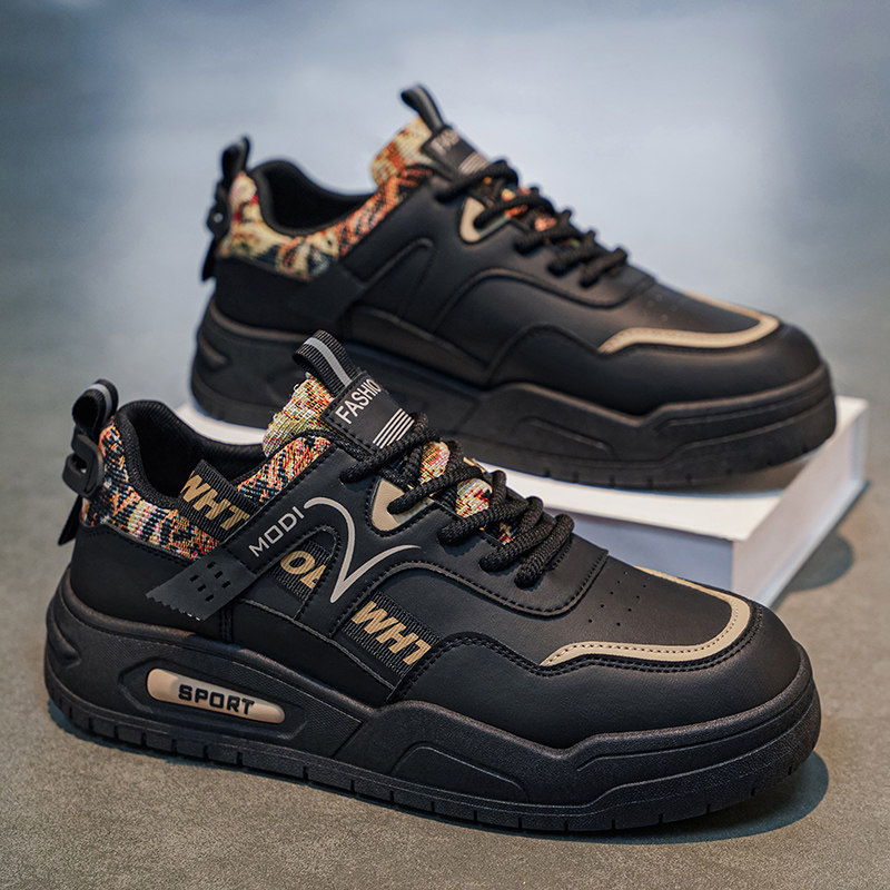 男鞋2026新款春季爆款百搭皮面休闲板鞋学生增高运动潮鞋潮流红色