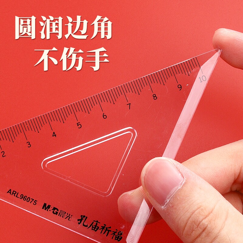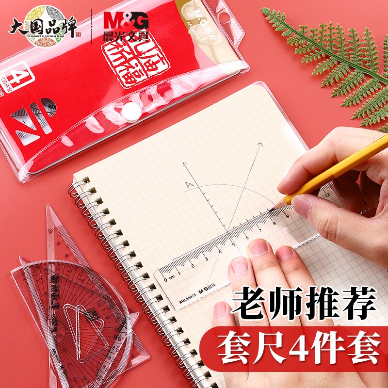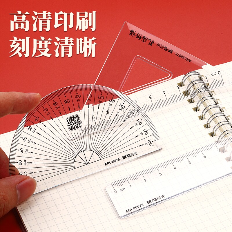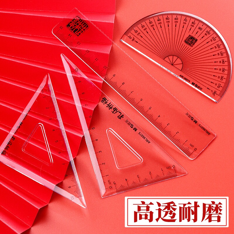 晨光涂卡套尺四件套小学生考试必备透明多功能尺子三角尺直尺量角器亚克力学生用15cm刻度尺几何工具文具套装