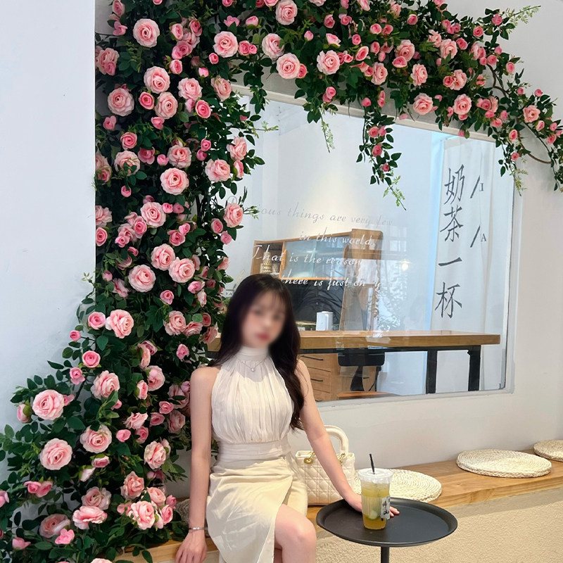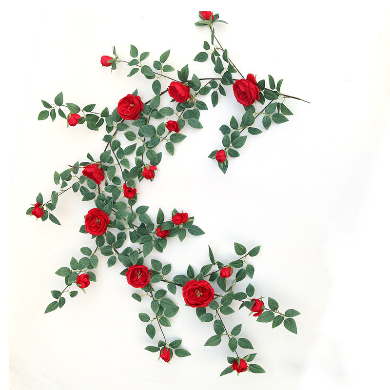 仿真玫瑰花藤条壁挂假花藤水管道空调管室内客厅装饰吊顶藤蔓植物