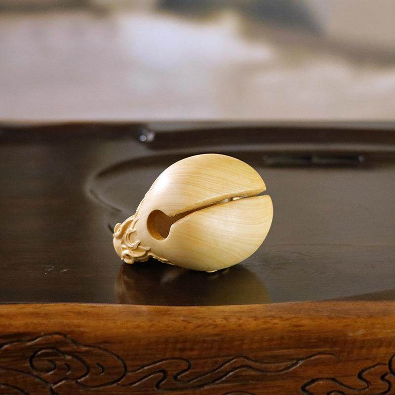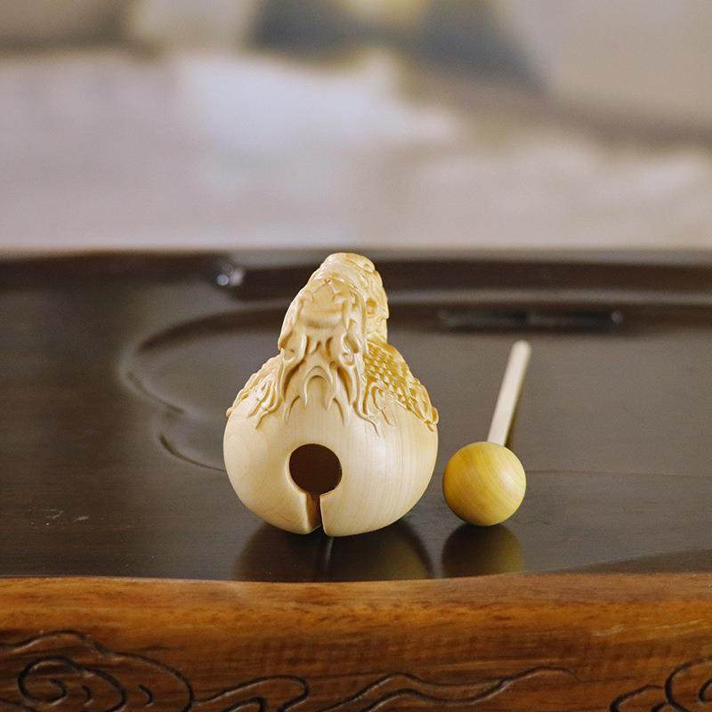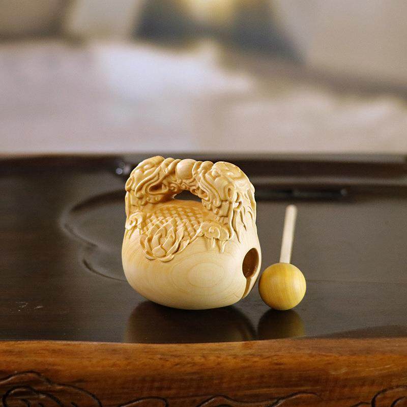 黄杨木雕刻木鱼中式木质双龙图案带薪打工人手把件玩趣
