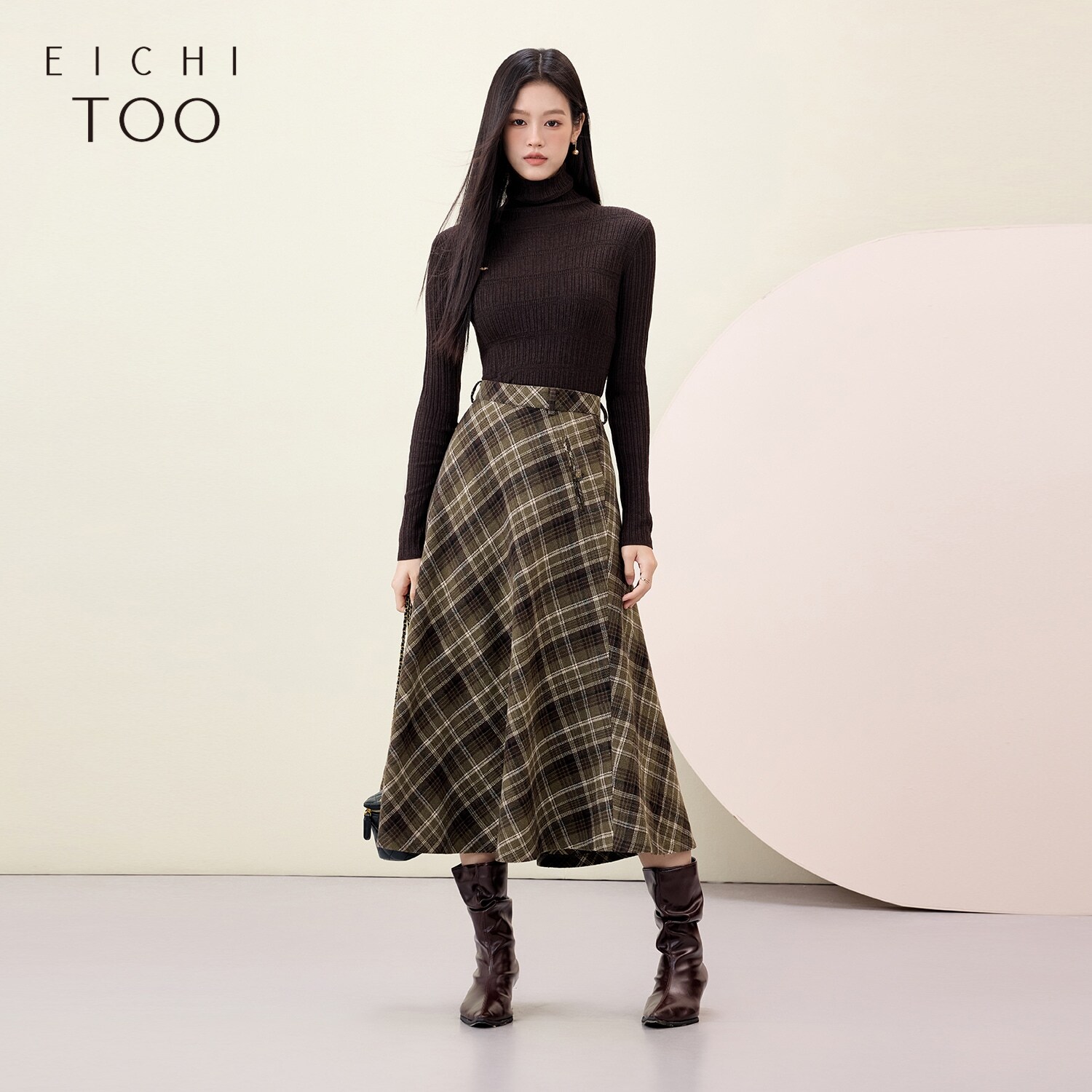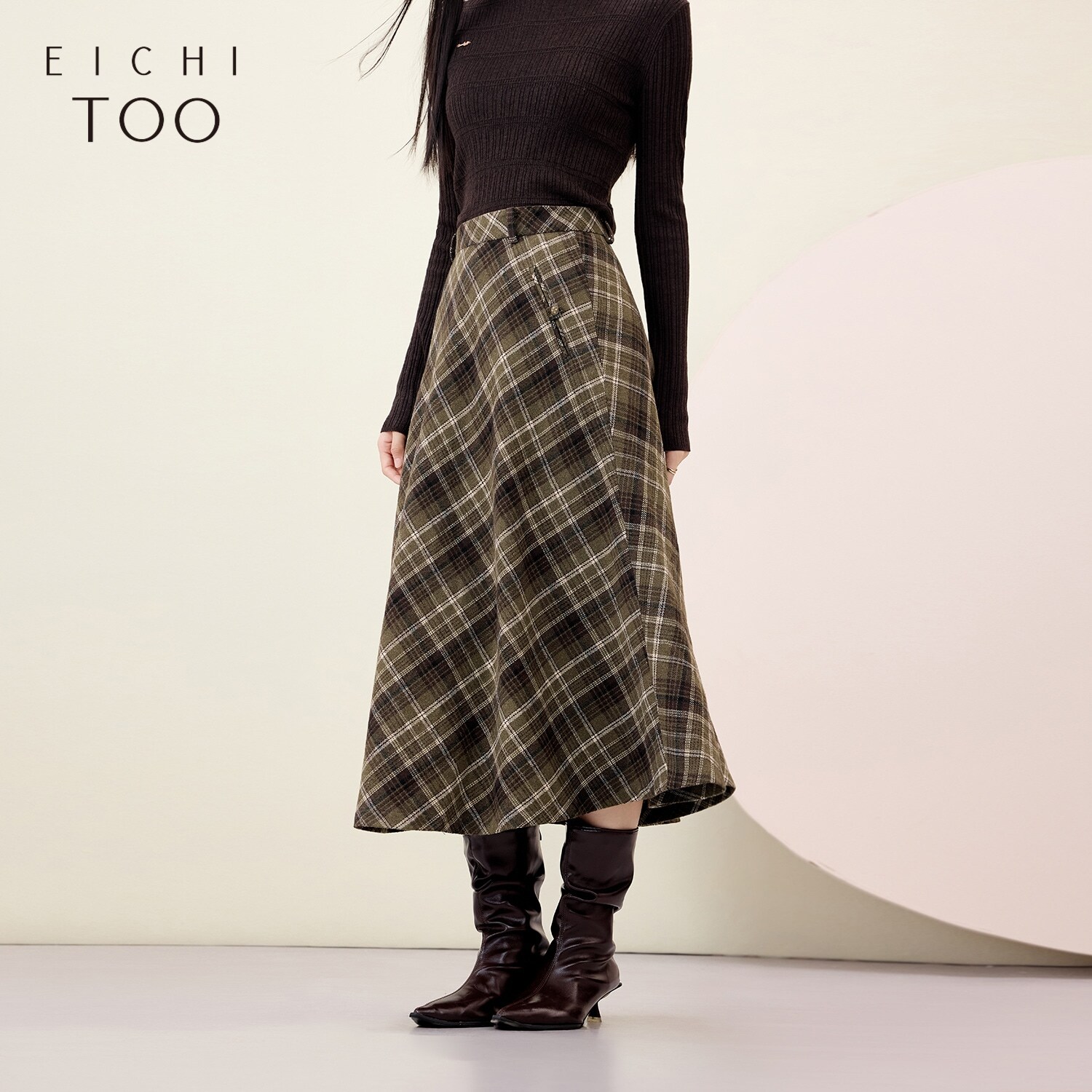 爱居兔经典格子半身裙女冬季新款复古英轮风a字裙长裙子