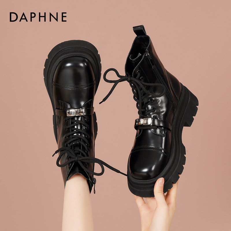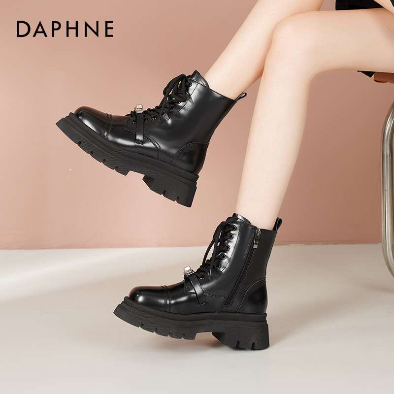 达芙妮厚底马丁靴女款2026新款秋冬骑士小短靴英伦风黑色短靴子女