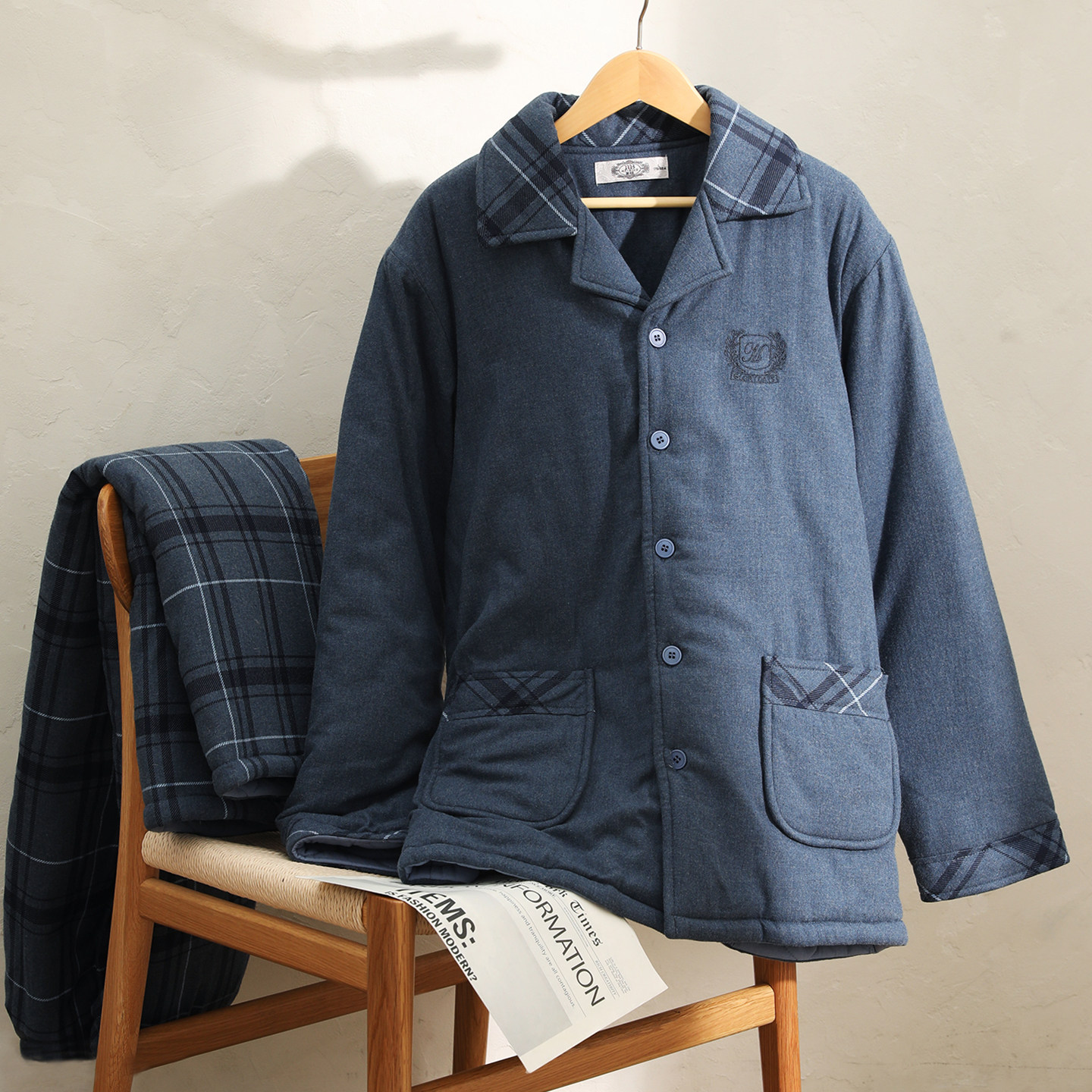 冬季珊瑚绒男士睡衣三层夹棉加厚加绒法兰绒秋冬款家居服保暖套装