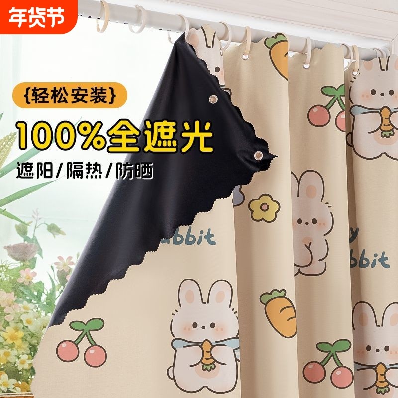 全遮光窗帘免打孔遮挡帘儿童房卡通帘阳台防晒隔热卧室客厅帘门帘