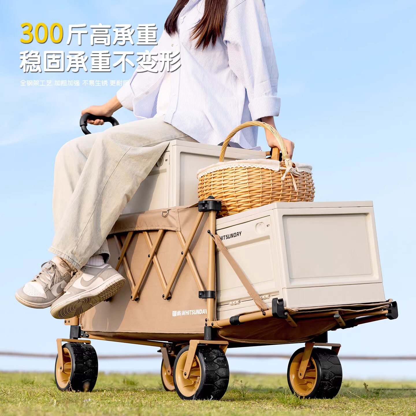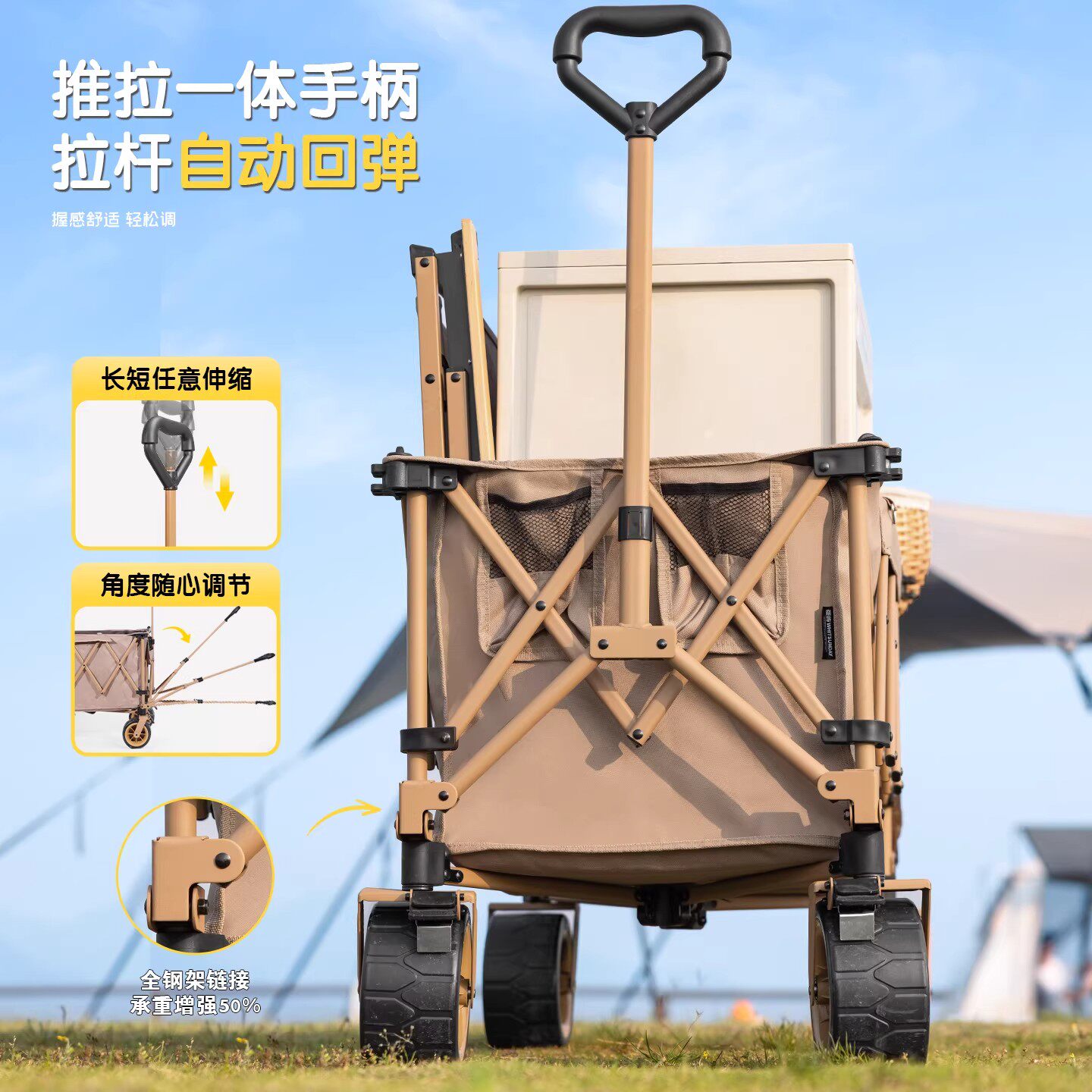 camel露营车手推车拉车营地车可折叠快递车儿童可躺户外野餐拉车