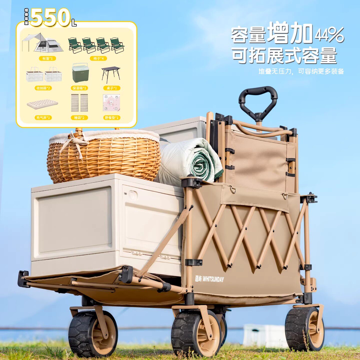 歌秀丹露营推车营地拖车户外折叠超大野营手拉车小推车野餐车桌板