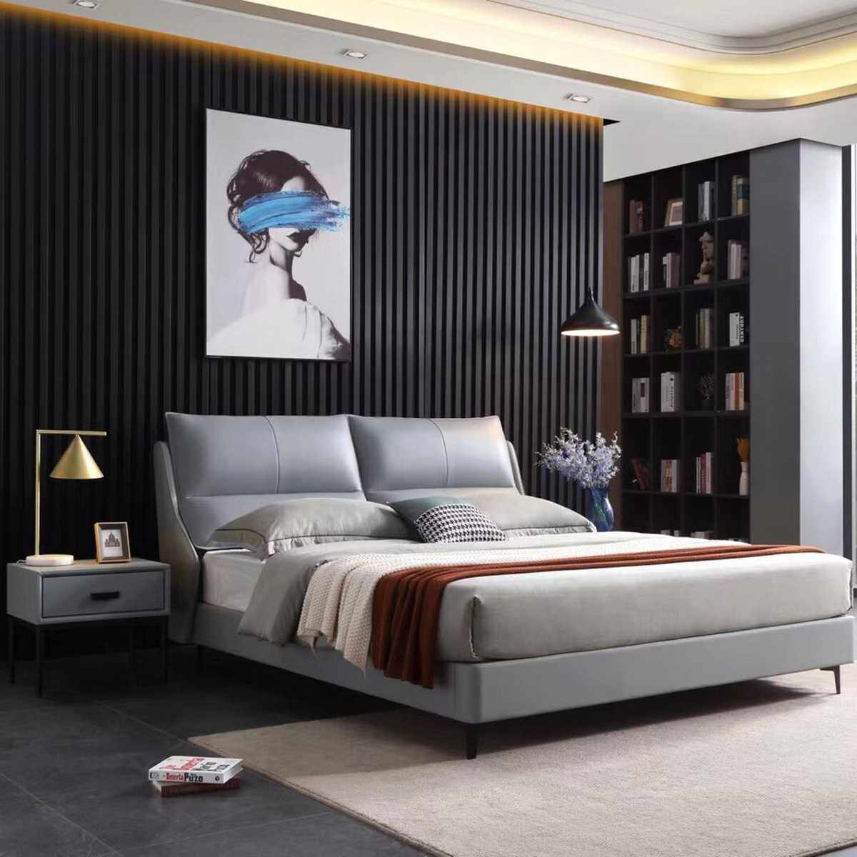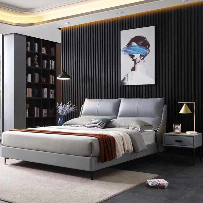 意式极简床真皮床主卧现代简约高端轻奢皮艺双人1.8米大婚软床