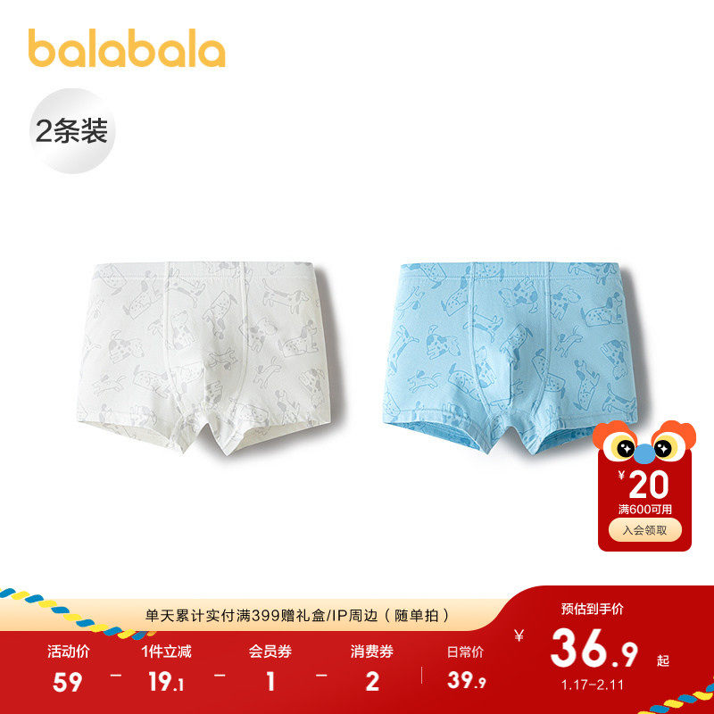 巴拉巴拉男童内裤平角小童四角短裤抗菌不夹P两条装
