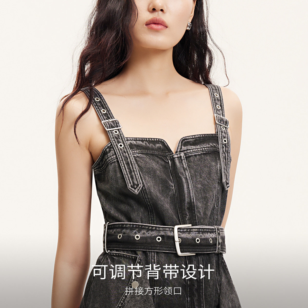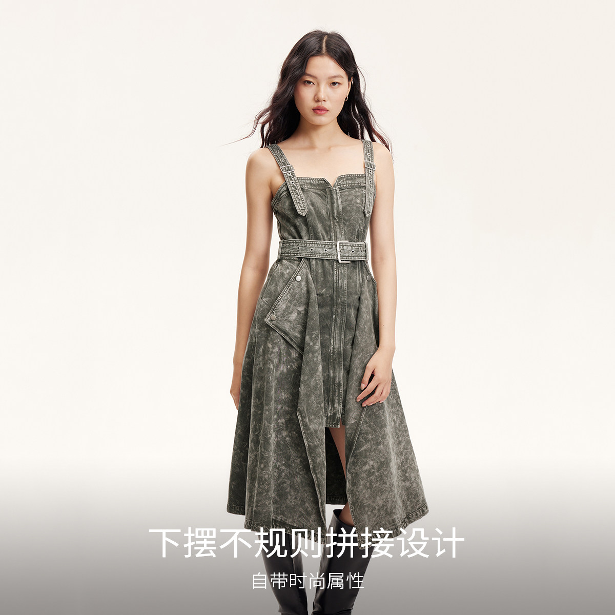 收腰牛仔吊带裙设计,时尚高街,显高显瘦